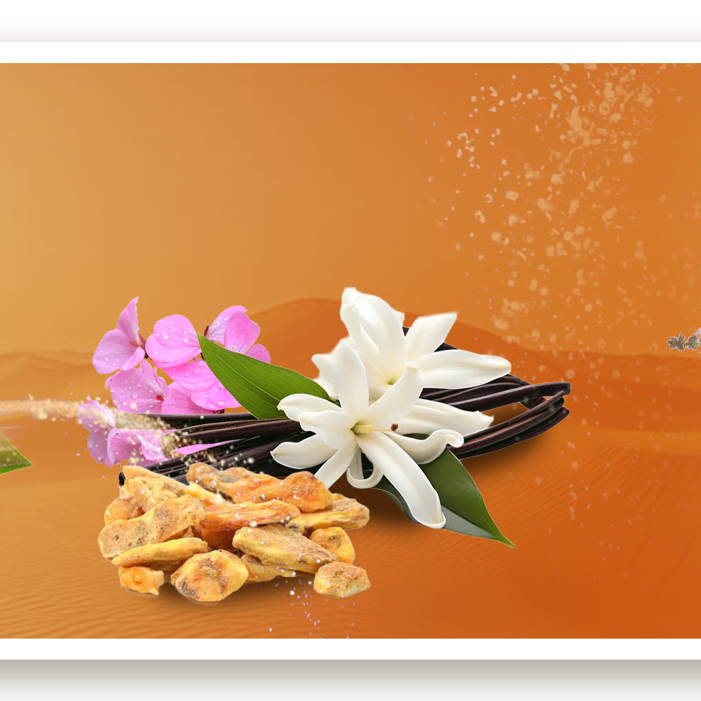 Nel primo respiro di questa fragranza si accende un soffio speziato, che introduce un cuore di vaniglia e benzoino, in cui il calore resinoso incontra una dolcezza elegante e raffinata. Nel fondo, il carattere cuoiato e muschiato emerge con decisione, regalando profondità e sensualità di una notte trascorsa sotto le stelle del deserto.