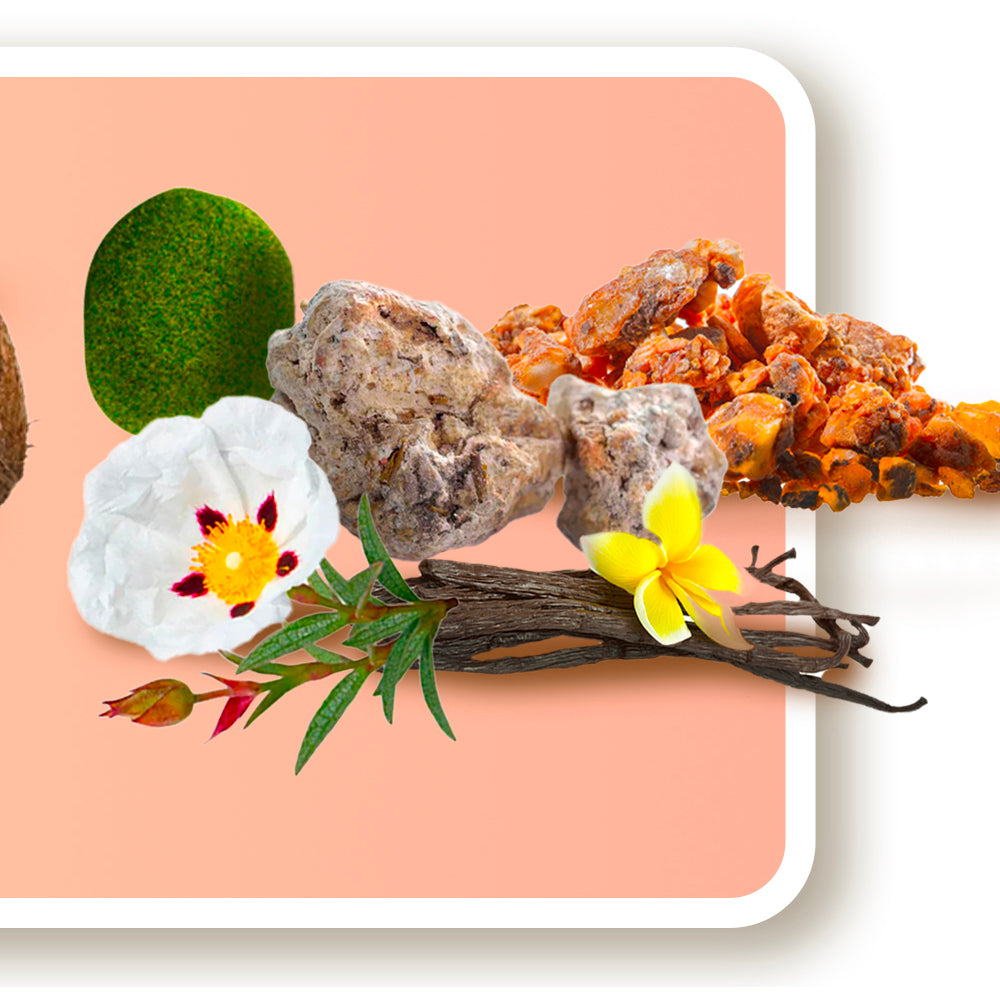 Assoluta di Cistolabdano, Assoluta di vaniglia del Madagascar, Benzoino, Suede, Muschi sensuali, Ambergris